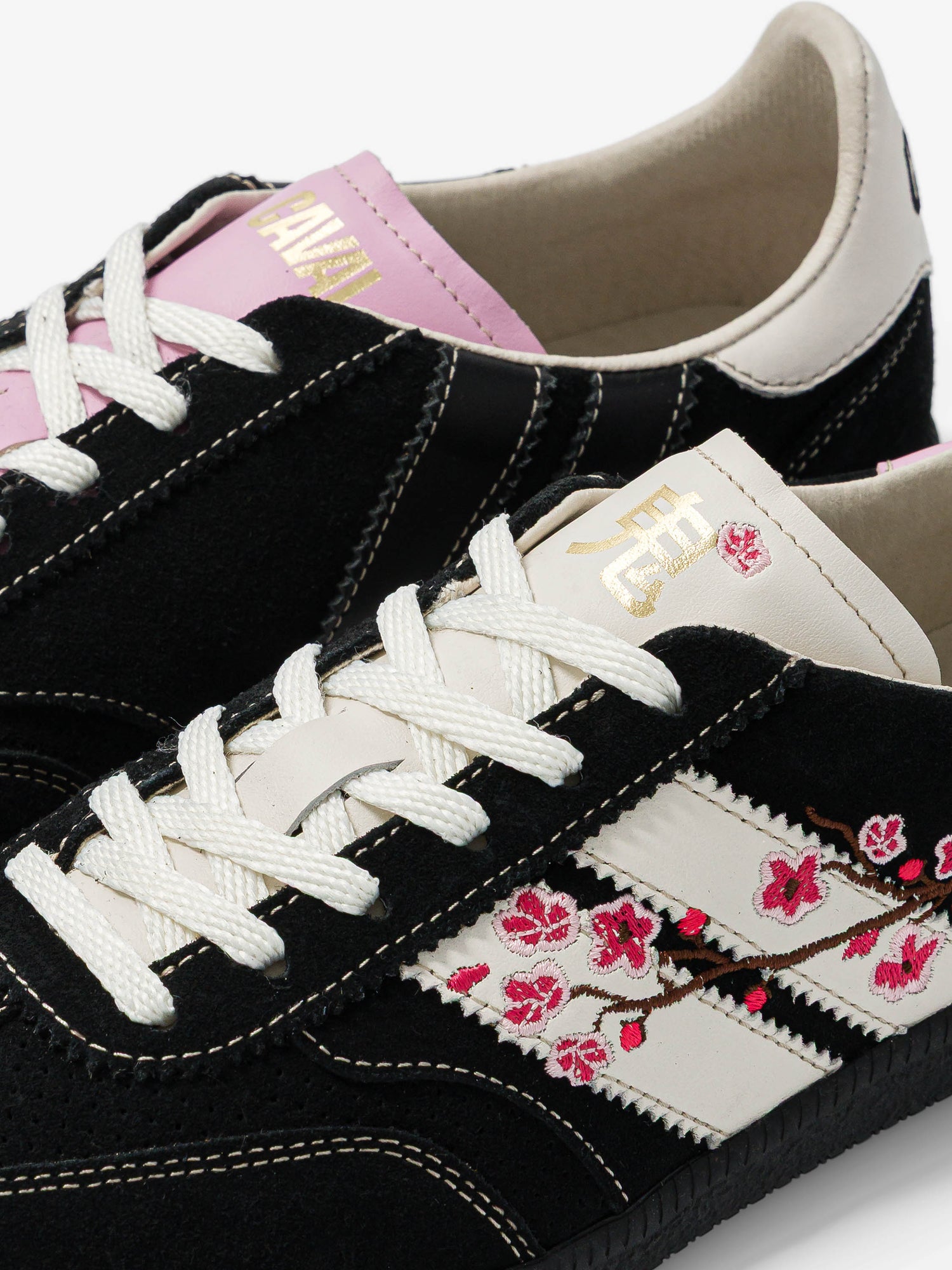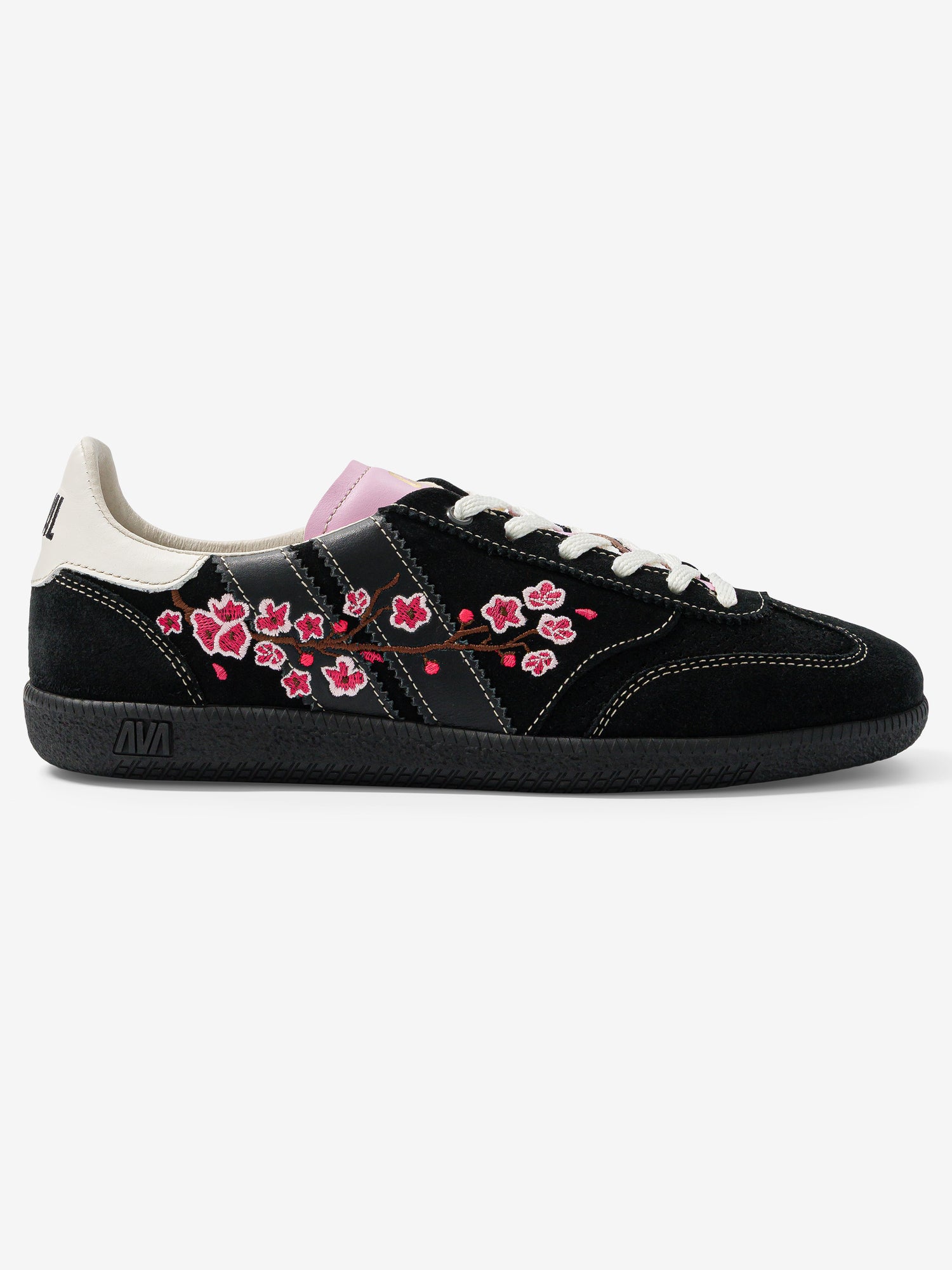 La semelle en gomme emblématique de la Pulse se réinvente en noir, pour mettre en lumière les broderies délicates. 🪡