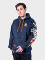 • Couleur bleu marine et plusieurs variations d'orange et de rouge